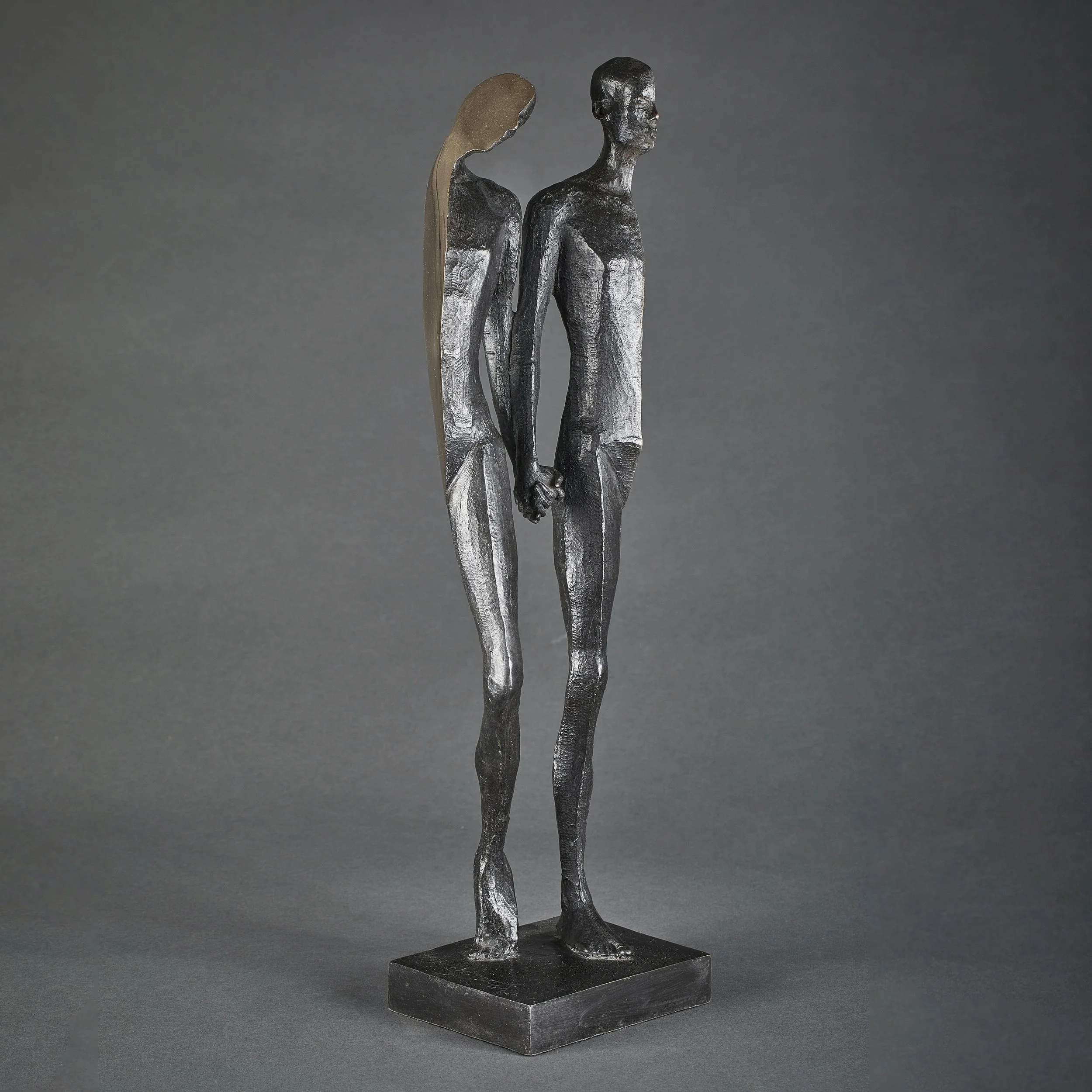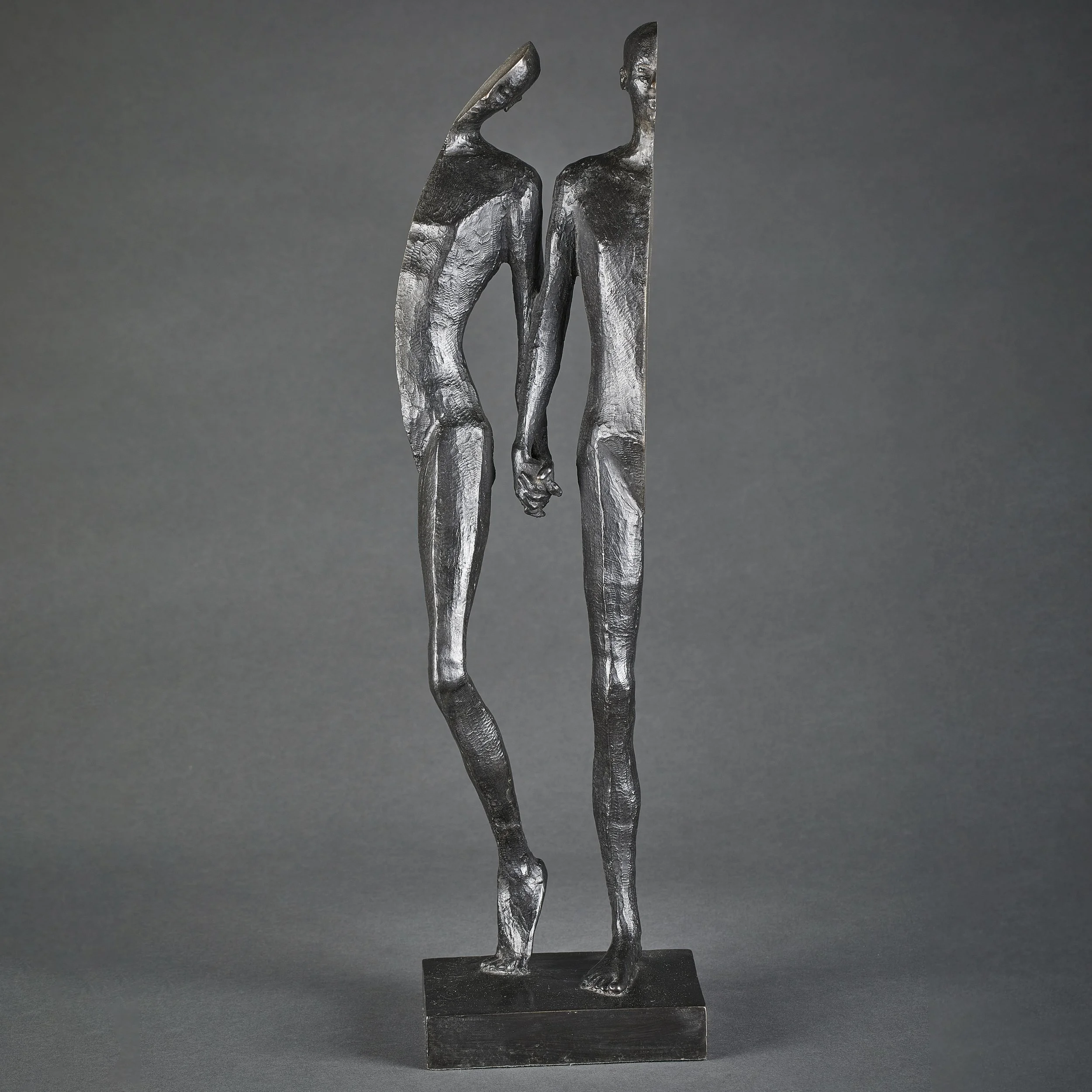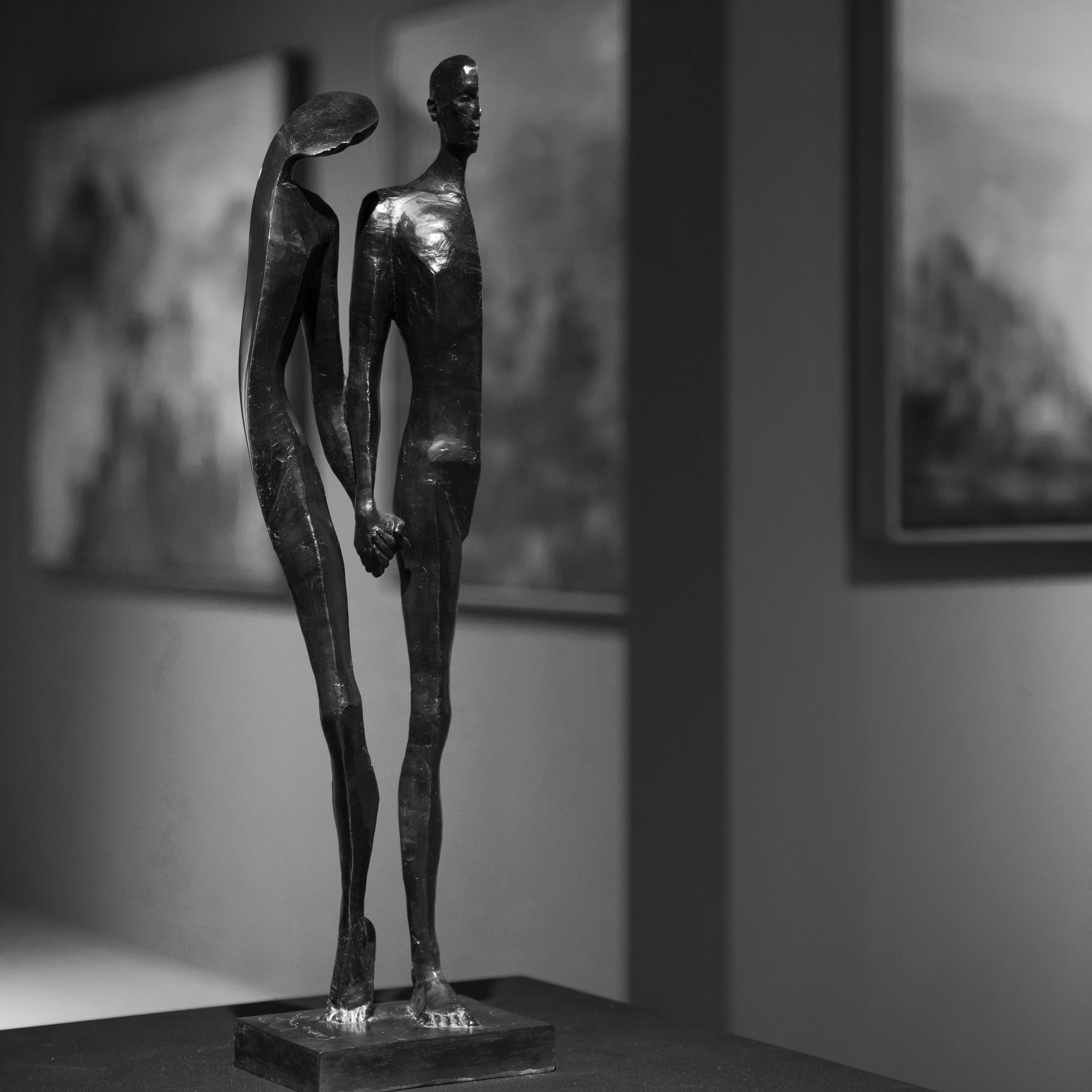 This sculpture grew out of a period when I was reflecting on love and connection. It can be seen in two ways: as a single figure in dialogue with itself, or as two individuals meeting—held together in a quiet, shared space.